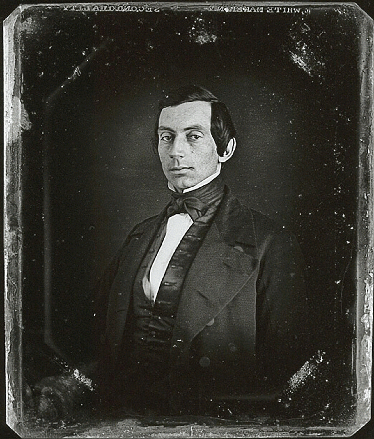 Az itt látható, komoly fiatalember – itt még szakáll és cilinder nélkül – Abraham Lincoln. Ez a legelső fotó róla, 1840-ben készült.
